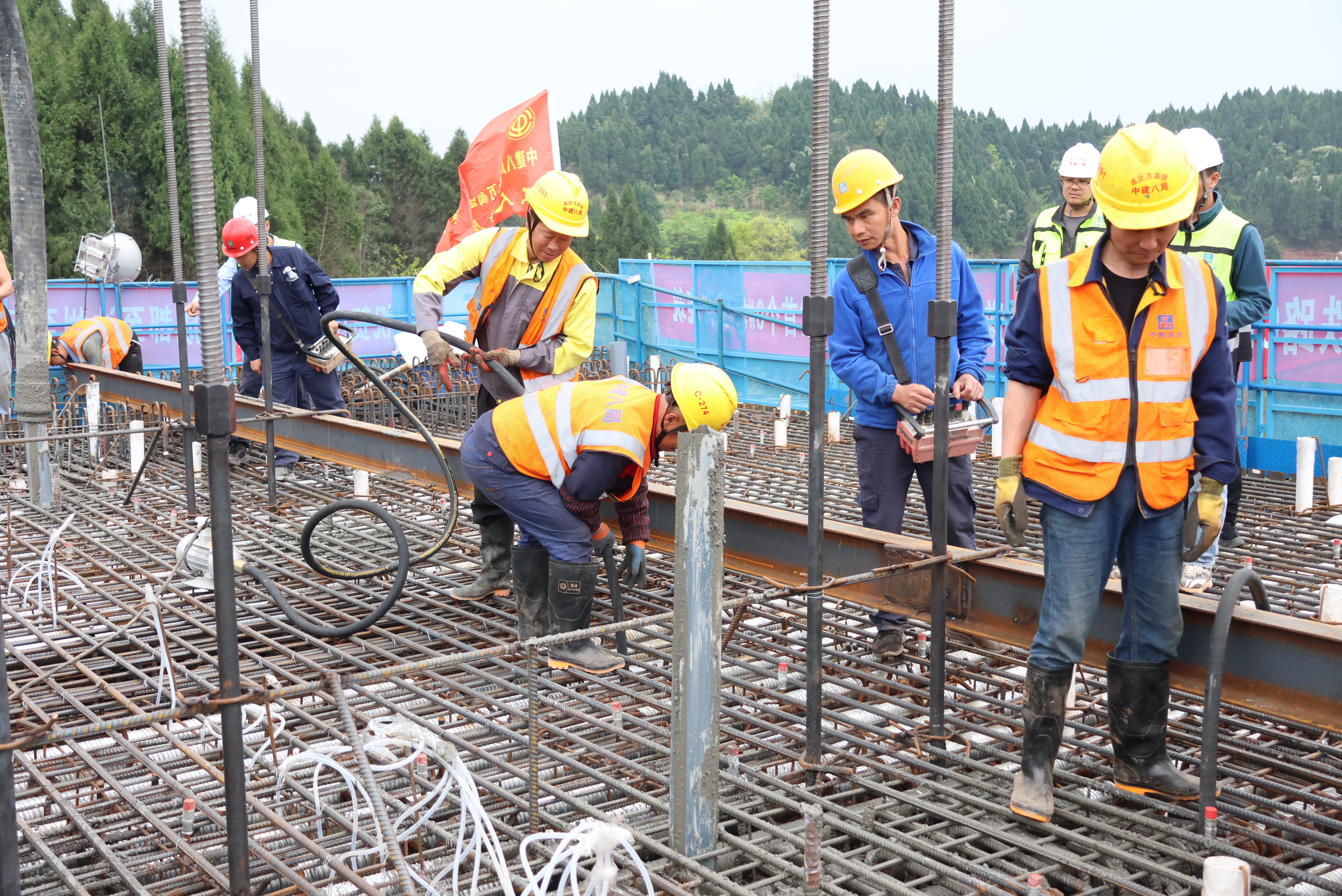 灌浆、浇筑、振捣……3月30日,在成达万铁路CDWZQ-5标重点工程跨遂内高速公路特大桥施工现场,装满混凝土的罐车来回穿梭,泵车将混凝土送至高处,10余名工人忙着对跨遂内高速公路特大桥连续梁“0号”块进行浇筑作业。这标志着成达万铁路首个跨高速特大桥上部结构正式施工。