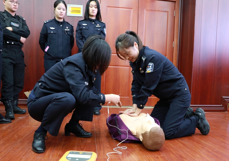 10月17日,射洪市公安局邀请射洪市人民医院专业救护医师开展应急救护知识培训,就艾滋病职业暴露处置与职业防护、心肺复苏及AED的正确使用进行现场培训。