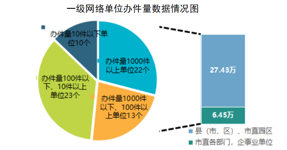 2023年68个一级网络单位共办理33.88万件,其中县(市、区)、市直园区办理27.43万件,市直部门及有关企事业单位办理6.45万件。按期办结率99.78%、办结回复率96.92%,总体情况较好;群众满意率95.05%,略有下降,主要原因在于回访扩面,部分行业(领域)问题解决难度加大。热线办理质效保持较高水平,但个别地方、单位相关领域各项指标偏低,反映出解决问题的力度不够、举措不多、方法不当,对热线工作的重视程度和保障水平还有差距。