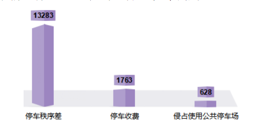 (九)停车管理方面15692件,同比增长21.30%,群众满意率94.98%,同比下降0.45%。主要涉及机动车、非机动车辆随意停放,妨碍车辆、行人通行等问题,以及停车收费不合理、未按标准价格执行等。相关部门要加强车辆停放管理,完善停车标识标线等措施,合理增设部分停车位,进一步缓解交通秩序混乱、车辆乱停乱放、居民出行不便等问题。