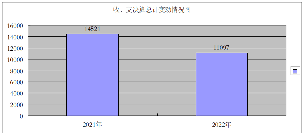 2022年度收入合计11097万元,2022年度支出合计11097万元,2021年度收入合计14521万元,2021年度支出合计14521万元。与2021年相比收入、支出各减少3424万元,降低23.57%,主要变动原因是2021年收到政府性基金预算财政拨款3433万元支付高新校区租金,2022年无此对应收入。