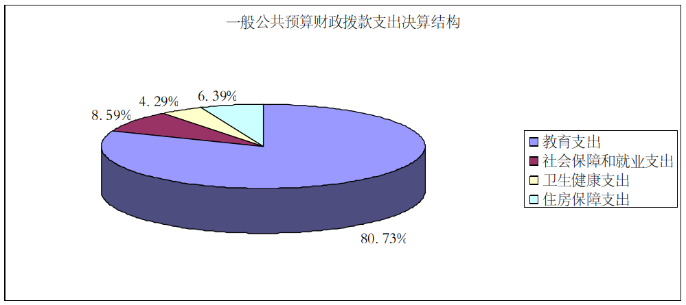 2022年一般公共预算财政拨款支出10536万元,主要用于以下方面;教育支出(类)8506万元,占80.73%;社会保障和就业(类)支出905万元,占8.59%;卫生健康支出452万元,占4.29%;住房保障支出(类)673万元,占6.39%。