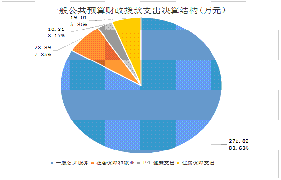 2021年一般公共预算财政拨款支出325.03万元,主要用于以下方面:一般公共服务(类)支出271.82万元,占83.63%;社会保障和就业(类)支出23.89万元,占7.35%;卫生健康支出(类)支出10.31万元,占3.17%;住房保障支出支出(类)支出19.01万元,占5.85%。