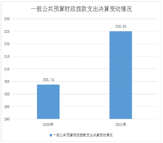 2021年一般公共预算财政拨款支出325.03万元,占本年支出合计的95.68%。与2020年相比,一般公共预算财政拨款支出增加21.3万元,增长7.01%。主要变动原因是日常公用经费增加。