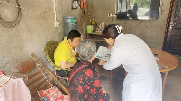 船山区唐家乡的李某患有精神疾病,多年来一直与病魔抗争。当工作人员走进李某的屋内时,李某显得有些局促不安。医生们耐心安抚着他的情绪,详细询问他的病情和日常生活情况,精防人员则仔细检查他的居住环境,确保没有潜在的危险因素。在了解具体情况后,工作人员开始为李某制定个性化康复方案,并传授其自我调节方法,帮助他更好地控制情绪和症状。整个面访过程中,工作人员不仅关注李某的病情,更关心他的内心世界,倾听他的心声、了解他的需求,为他提供了心理支持和安慰。