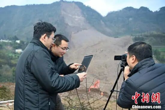 2月11日,四川省宜宾市筠连县山体滑坡现场,“黄金72小时”过后,灾害现场多种先进监测设备和手段助力救援。图为先进的边坡滚石雷达实时监控灾害滑坡体,确保救援工作安全进行。