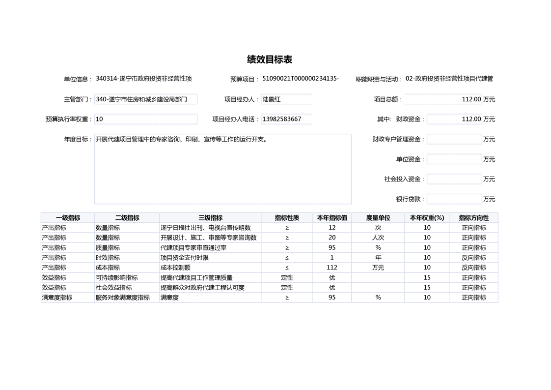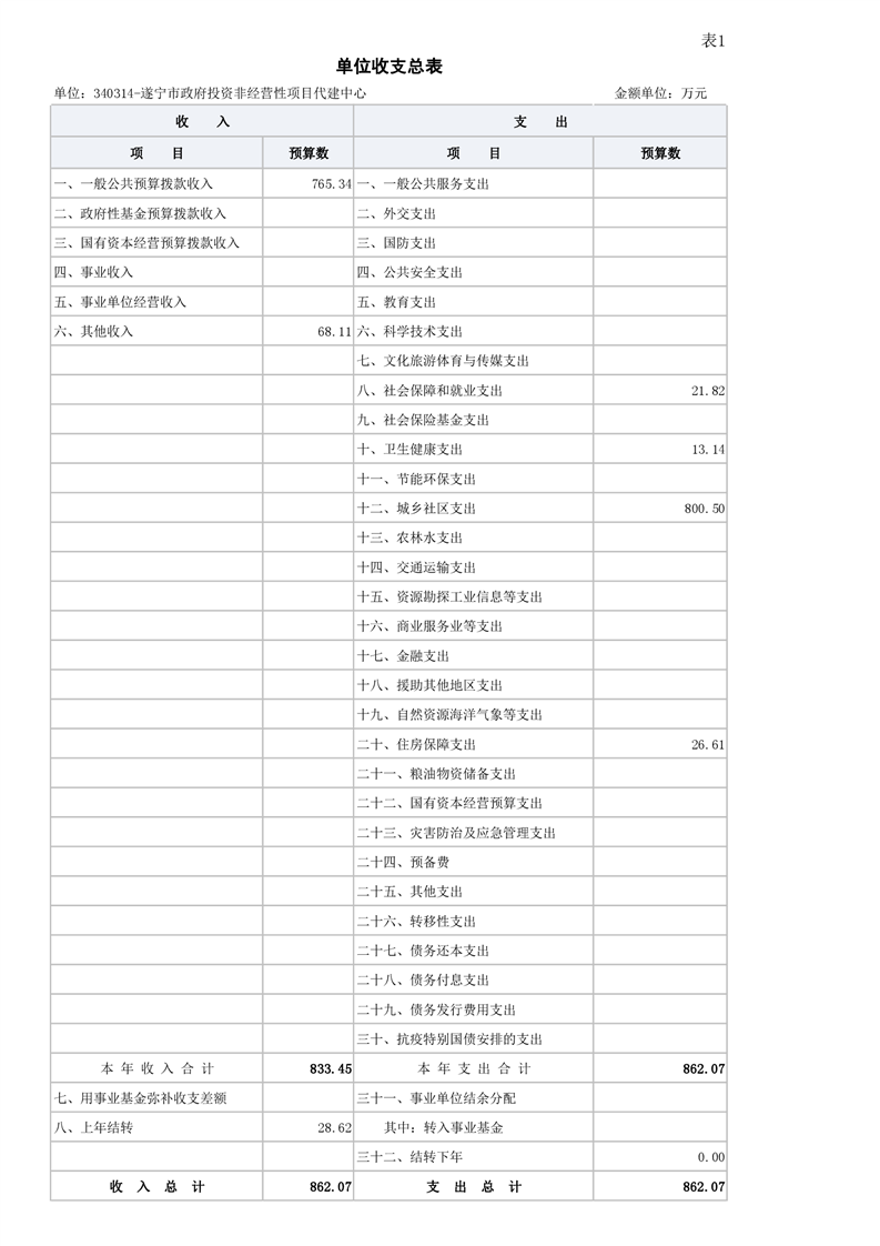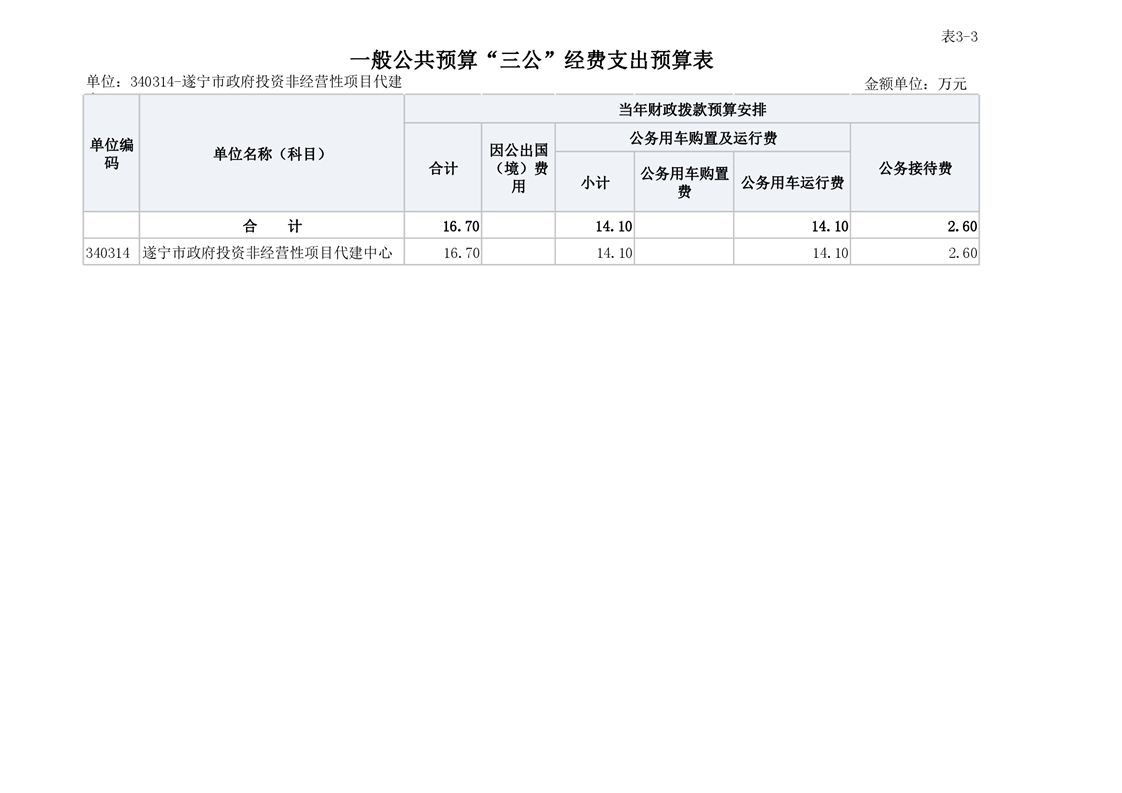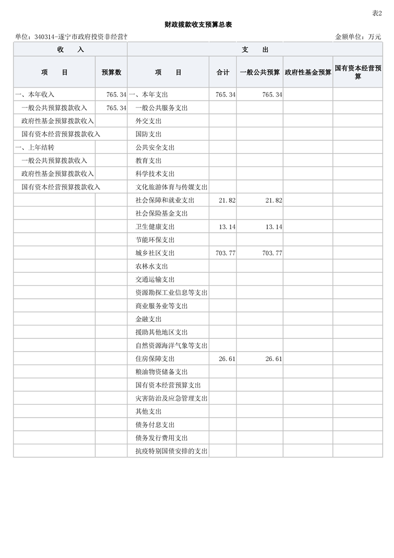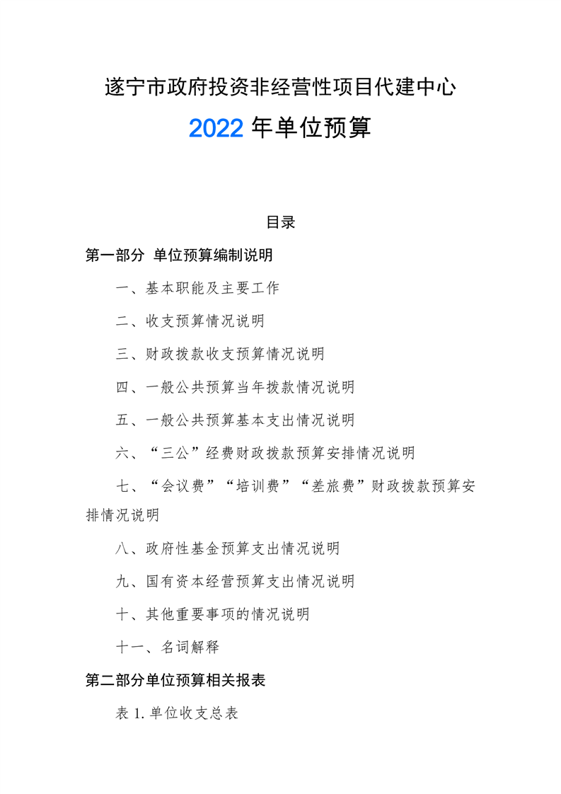 遂宁市政府投资非经营性项目代建中心2022年单位预算