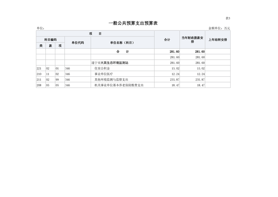 遂宁市大英生态环境监测站2023年预算