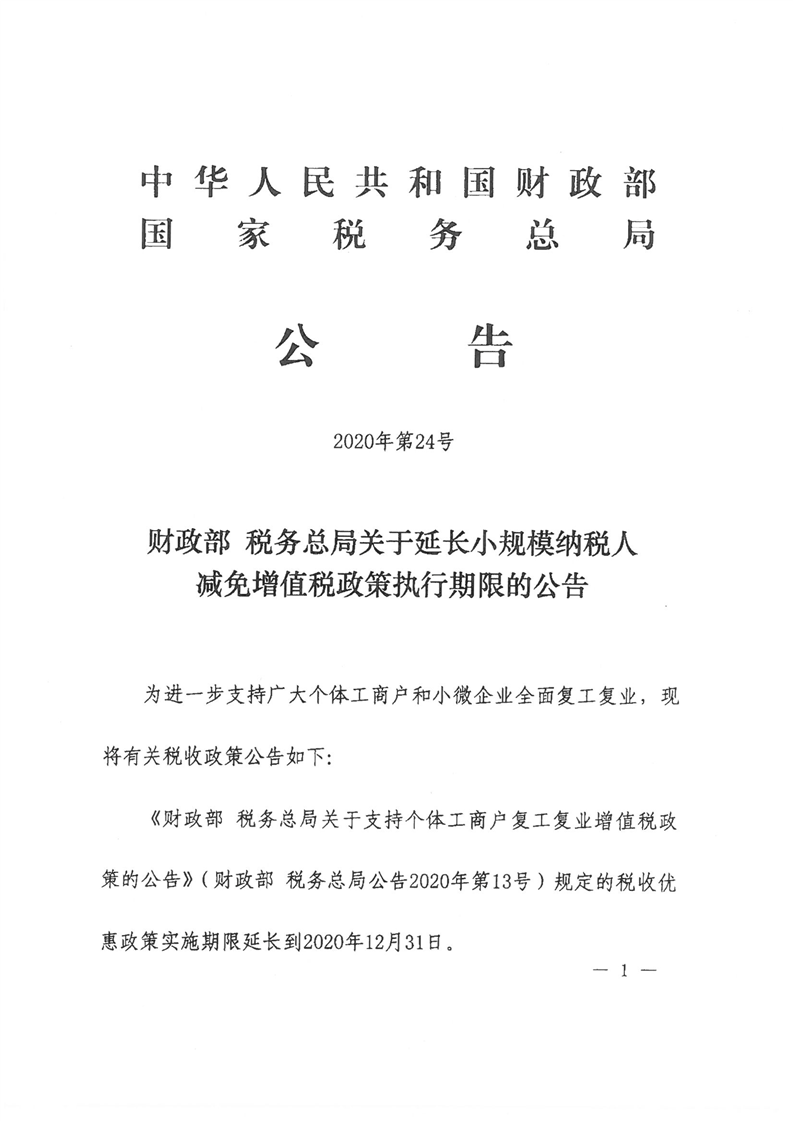 财政部 税务总局关于延长小规模纳税人减免增值税政策执行期限的公告