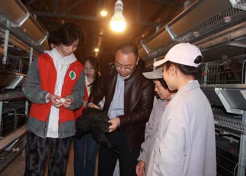 唐利军(中)开展乌鸡养殖指导工作(资料图片)