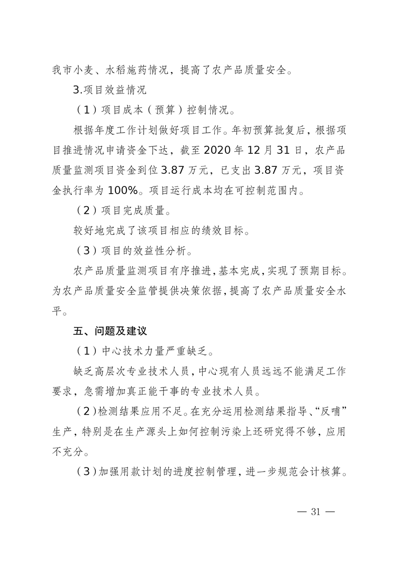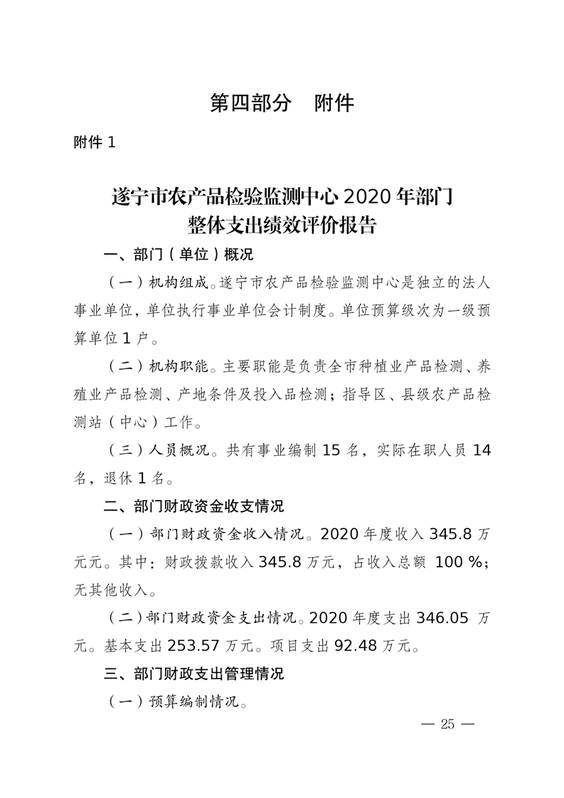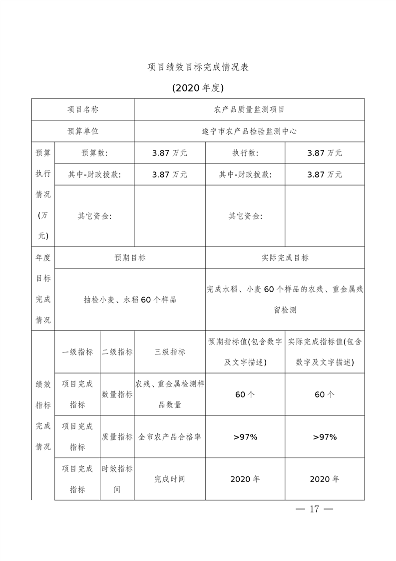 2020年度 四川省遂宁市农产品检验监测中心决算