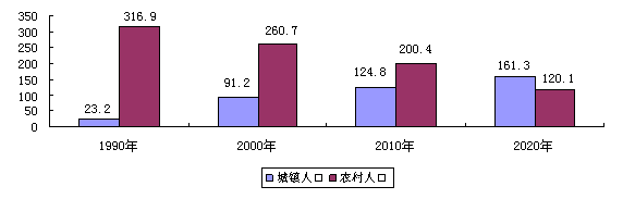 全市常住人口[3]中,居住在城镇的人口为1612641人,占57.30%;居住在乡村的人口为1201555人,占42.70%。与2010年第六次全国人口普查相比,城镇人口增加364226人,乡村人口减少802581人,城镇人口比重上升18.92个百分点。
