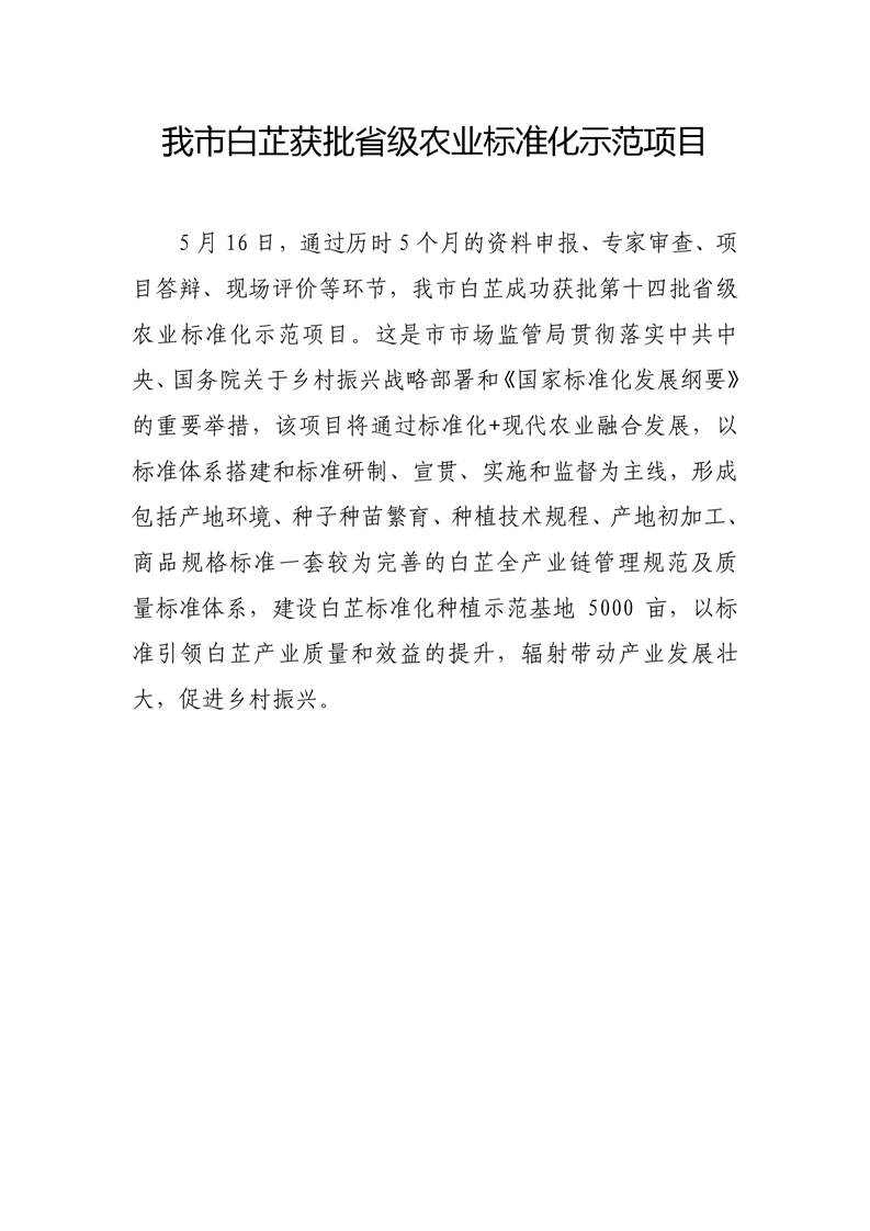 我市白芷获批省级农业标准化示范项目
