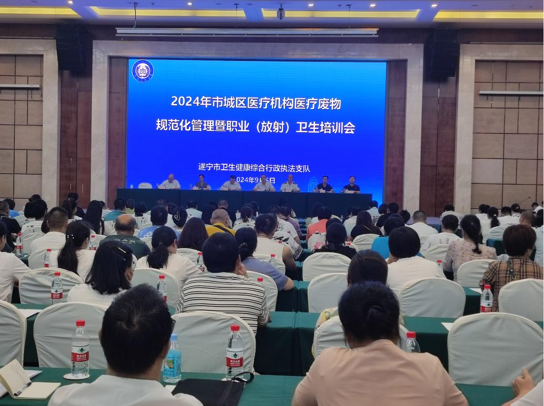为持续巩固常态化医疗机构监管机制,进一步提高医疗机构对医疗废物管理的科学化、规范化水平,坚决保障人民群众生命安全和身体健康,9月5日下午,遂宁市卫生健康综合行政执法支队在东旭阳光国际大酒店举办了2024年市城区医疗机构医疗废物规范化管理暨职业(放射)卫生培训会。参加会议的有市城区医疗机构负责人、支队执法人员等共计660余人。