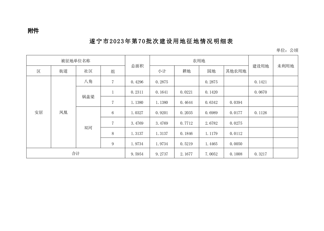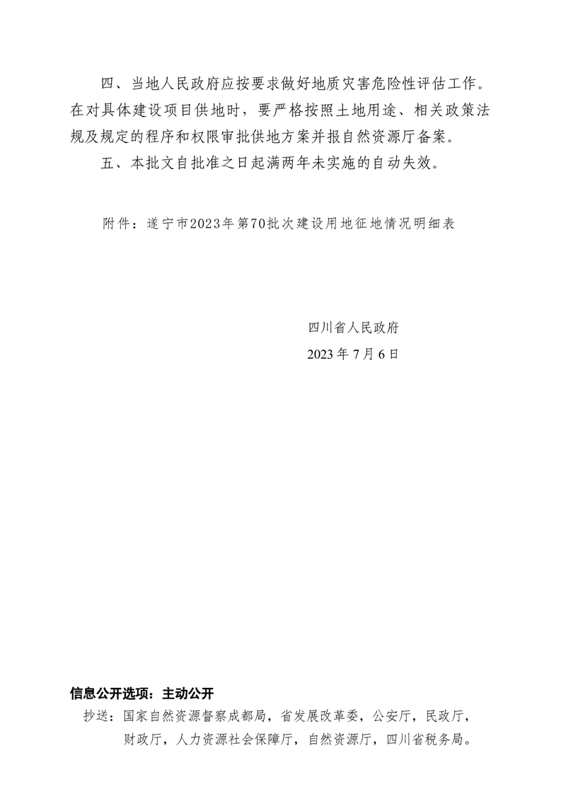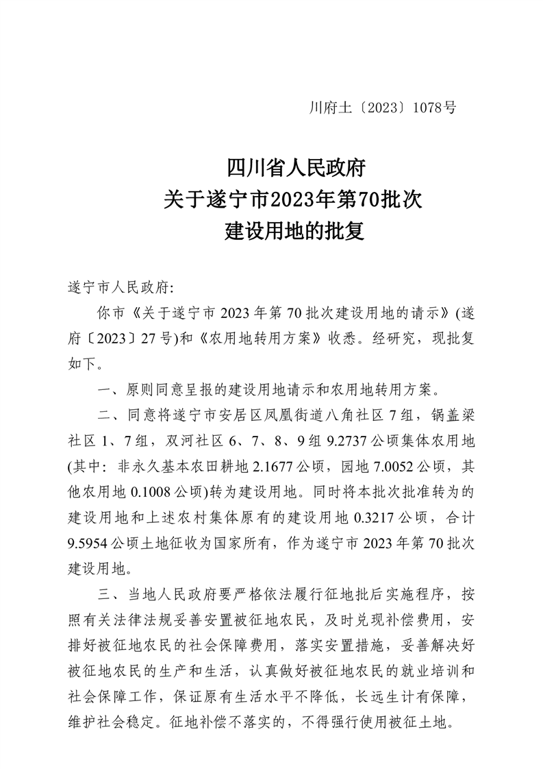 四川省人民政府关于遂宁市2023年第70批次建设用地的批复(川府土〔2023〕1078号 )
