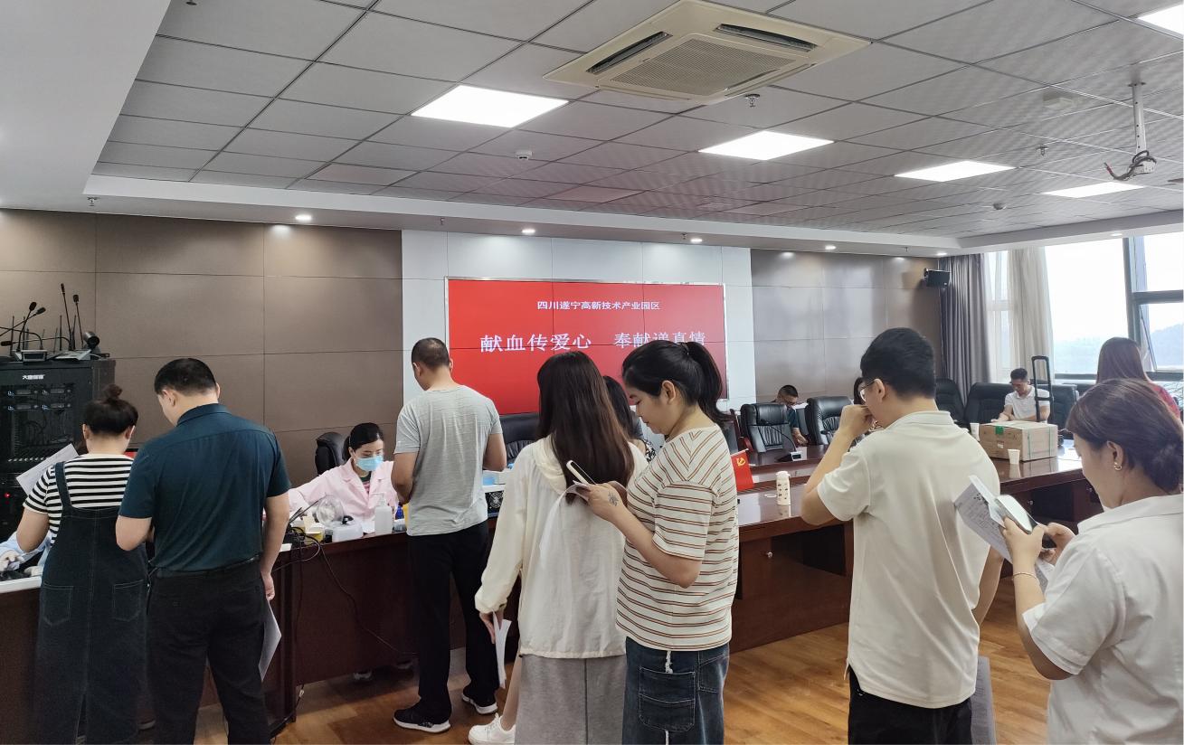 为积极配合做好我市无偿献血工作,保障医疗机构临床用血安全和需求,5月10日上午,遂宁高新区集中组织开展了无偿献血活动接到献血通知后广大干部职工积极踊跃报名,共计献血102人,献血20400ml。