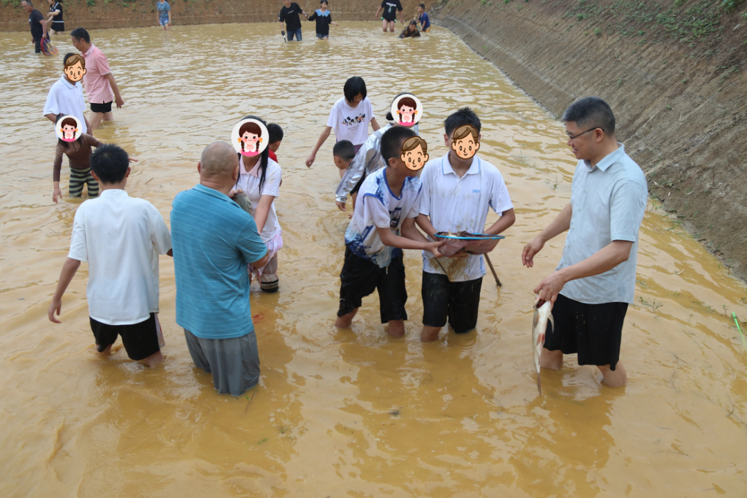 “这里有鱼尾巴!快围住它!”随着社工一声呼喊,孩子们卷起裤腿踏入清凉鱼塘。起初踮脚试探的孩子们,在社工、老师的指导下逐渐放开手脚——弯腰观察水流纹路、双手配合围堵鱼群,泥点溅满脸颊也顾不得擦。10岁的安安双手紧握草鱼高高举起,阳光下笑得见牙不见眼:“原来鱼儿游得比动画片里还快!”