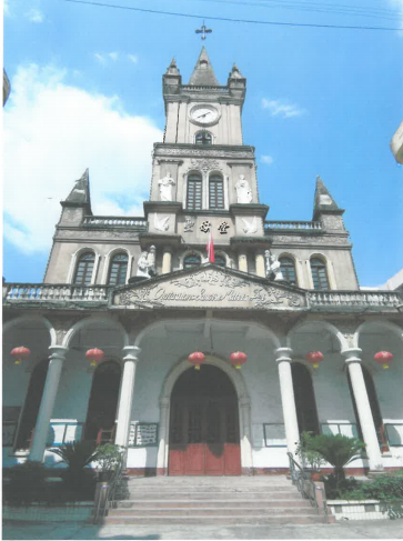 (三)圣母堂。位于遂州中路336号。哥特式建筑风格,系砖木结构,屋顶有天窗,木制楼板、转角走廊、百叶窗,内有壁炉装饰,历年101余载。