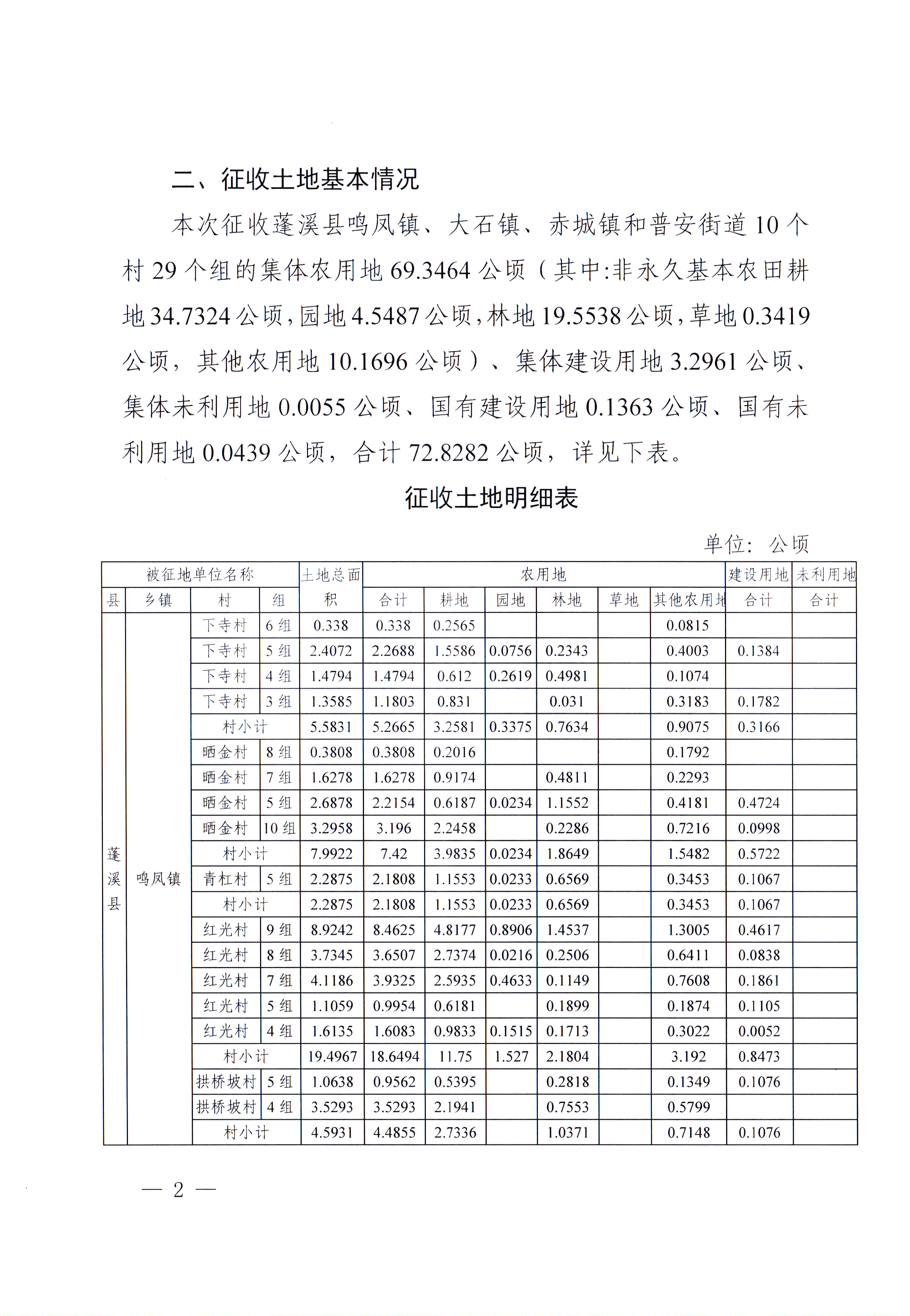 蓬溪县人民政府征收土地公告(蓬府公〔2024〕5号)