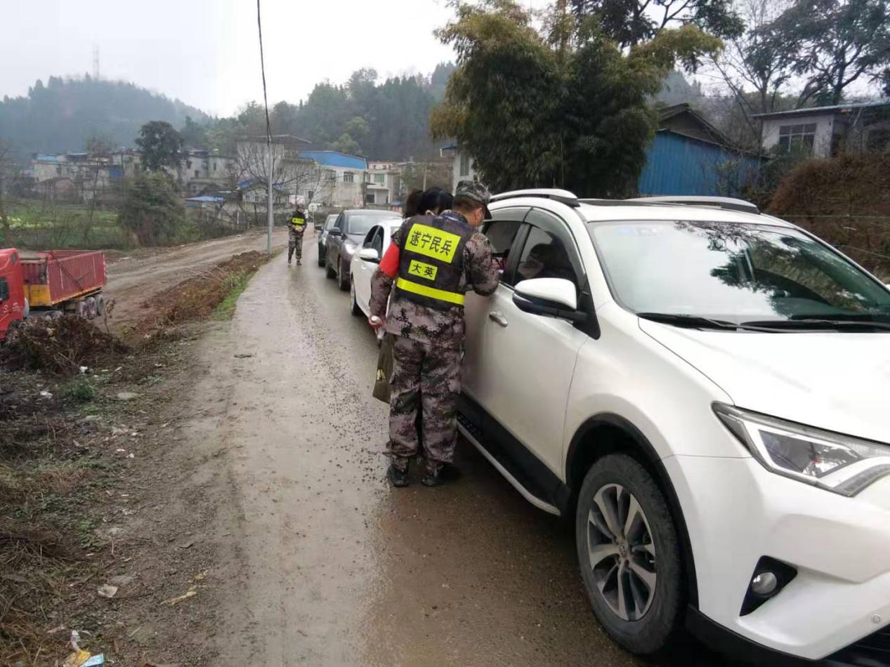民兵在长江坝村劝导站排查过往车辆
