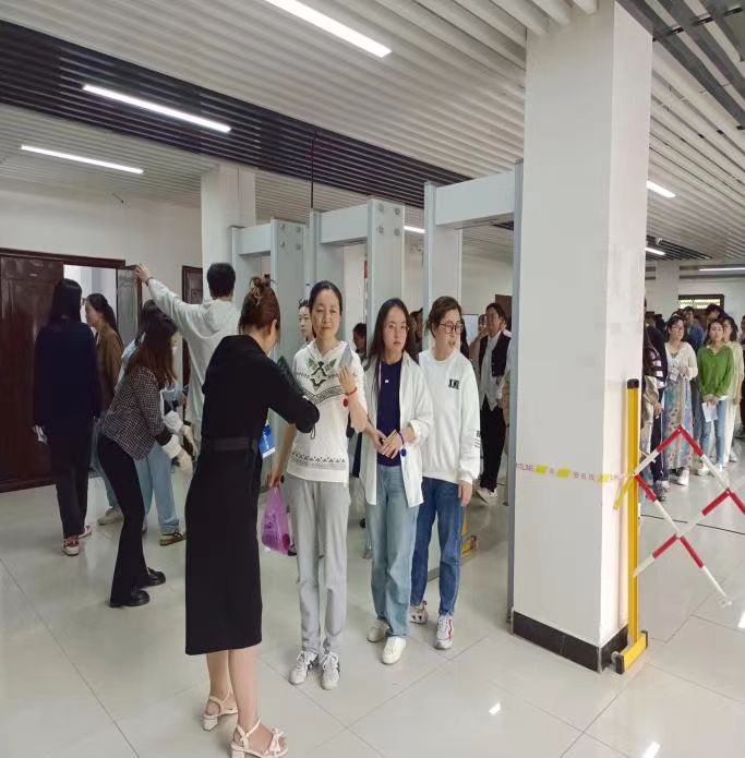 考试过程中,为严肃考风考纪、严防违纪违规行为,纸笔考试和人机对话考试均实行“裸考”制度。一是在考场内专门设置物品存放处,所有考生除必要考试物品外,其他物品均由专人进行存取,做到“一人一牌”。二是严把入场关,通过安检门和金属探测器进行安检和身份识别。三是进入试室前,监考人员再次使用金属探测仪对考生实行二次安检,有效杜绝考生携带无关物品进入考场。