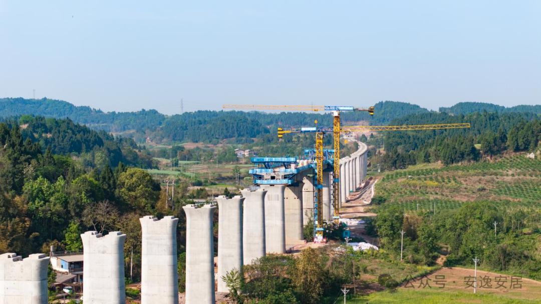 德公村特大桥是成达万高铁遂宁段控制性工程,位于遂宁市安居区横山镇德公村境内,设计时速350公里,全长3.87公里,是安居段最长的特大桥,有两座连续梁,跨越既有铁路线、河流,施工环境复杂,是标段重难点和控制性工程。