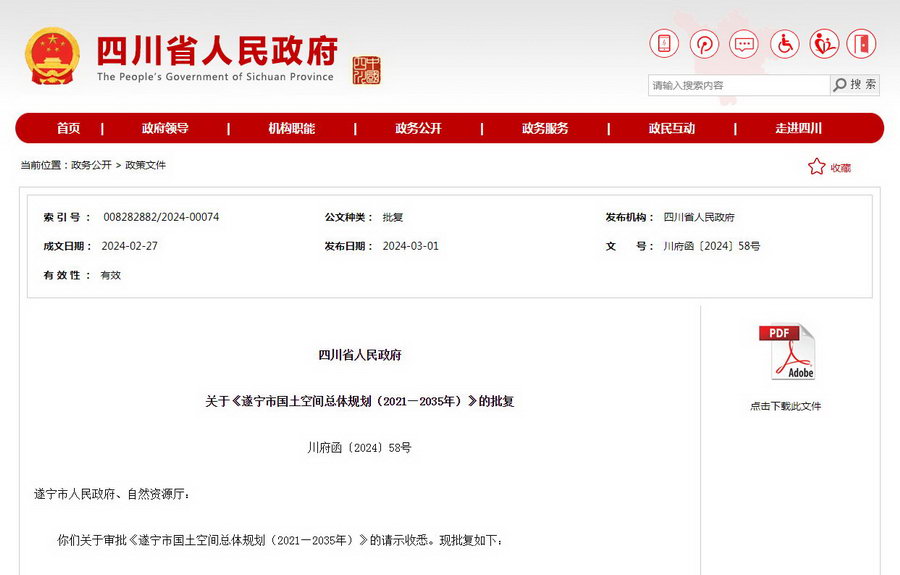 根据《规划》,遂宁全域将加强农业、生态、城镇空间统筹协调,构建“一核三片,三带五区”的国土空间开发保护格局。
