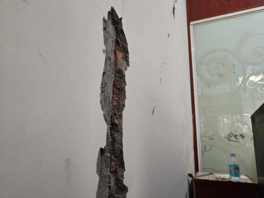 如今房屋墙体的开裂问题还在不断扩大,除房屋开裂引发漏水等问题,房屋的安全问题让刘女士一家人忧心忡忡,甚至都不敢在房内继续居住。