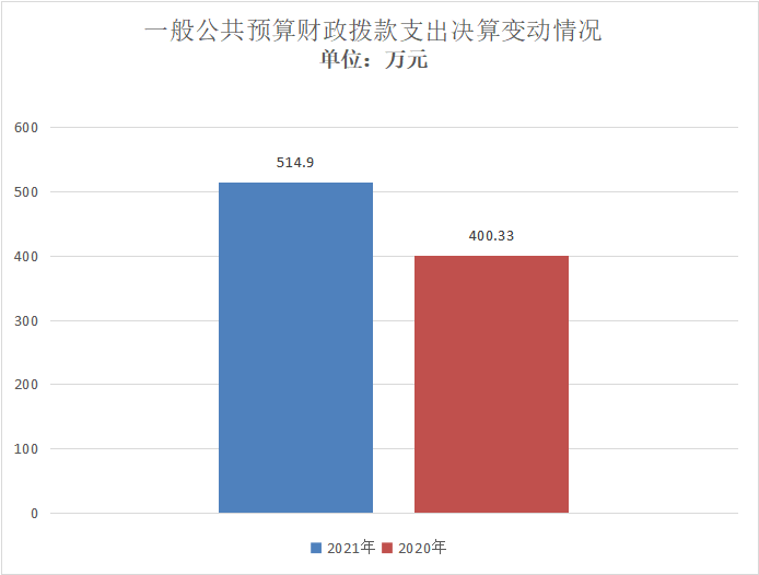 2021年一般公共预算财政拨款支出514.90万元,占本年支出合计的77.97%。与2020年相比,一般公共预算财政拨款支出增加114.57万元,增长28.62%。主要变动原因是一是新增职工一名,二是对供水系统进行了维修改造。
