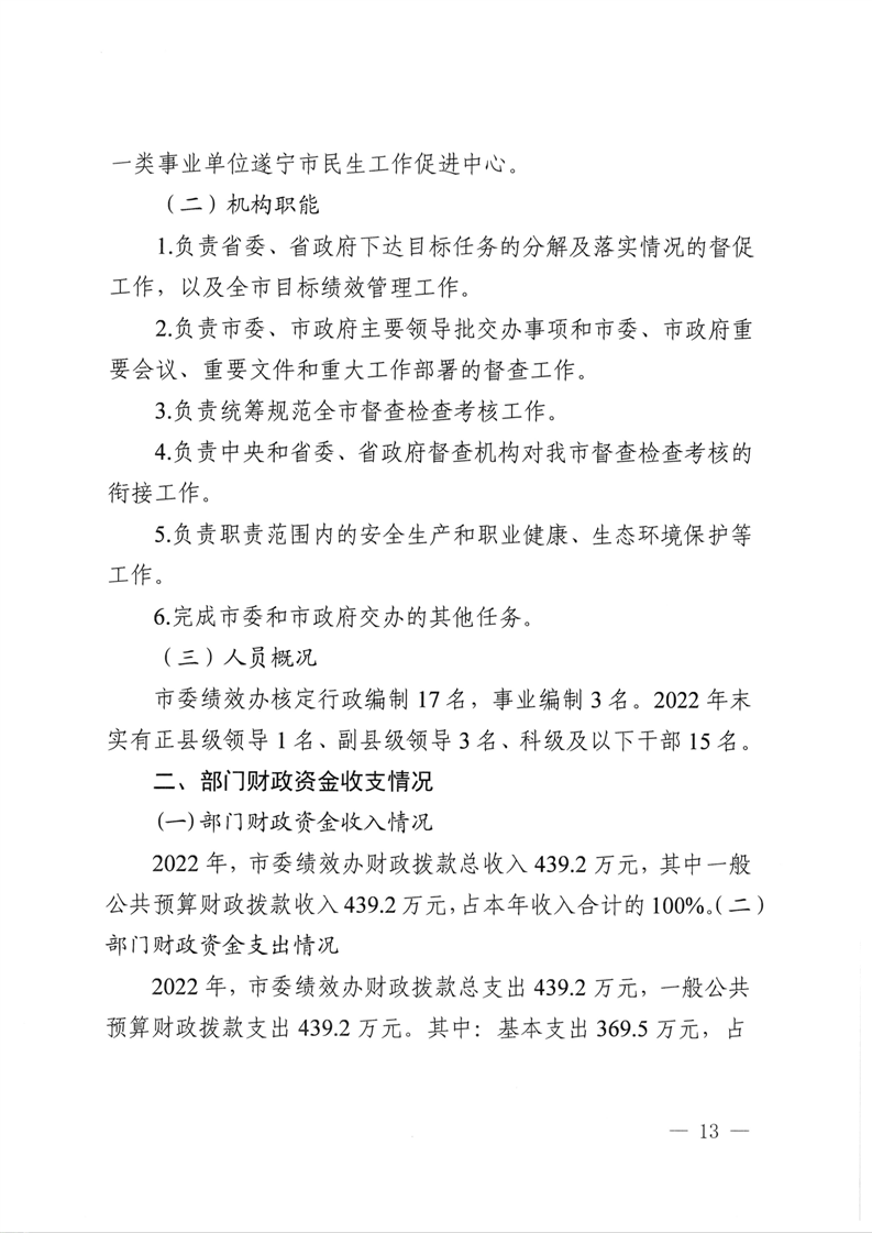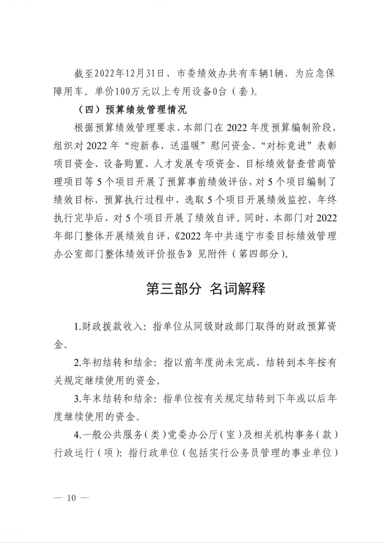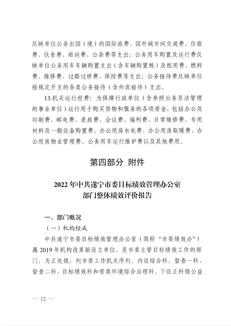 中共遂宁市委目标绩效管理办公室2022年度部门决算公开