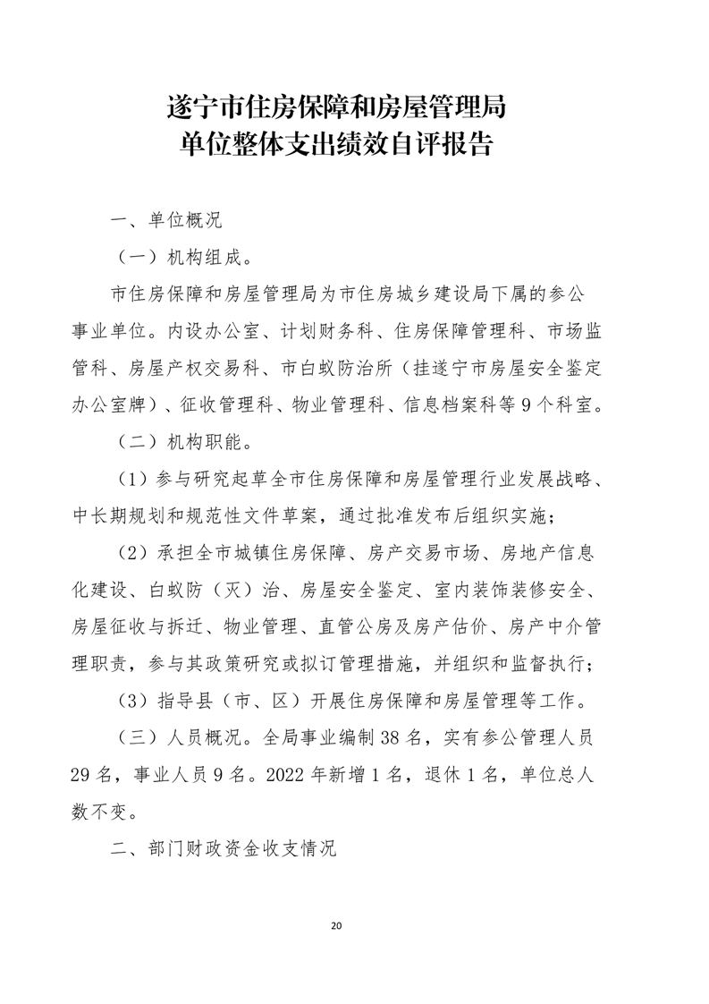 遂宁市住房保障和房屋管理局2022年单位决算编制说明
