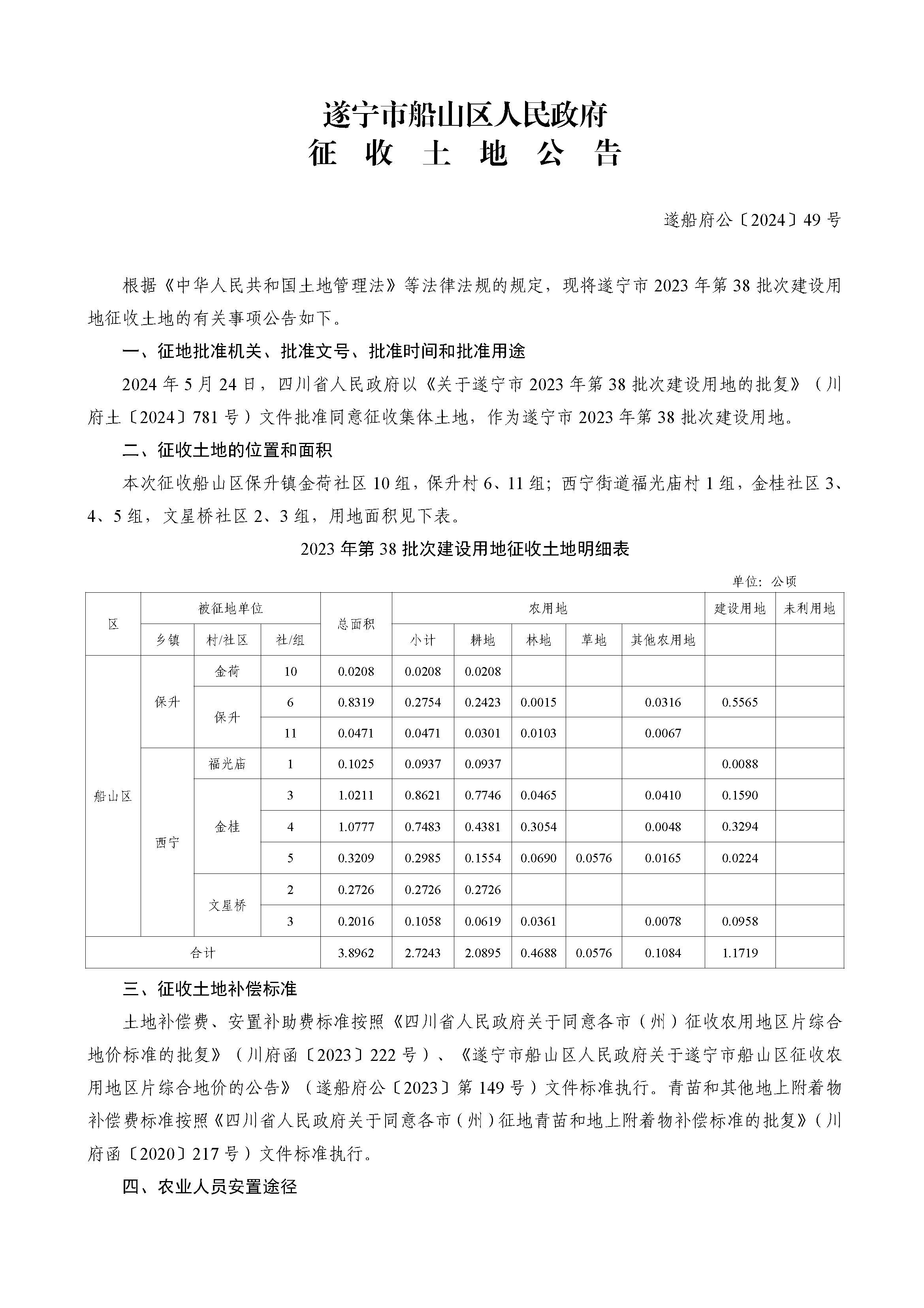 遂宁市船山区人民政府征收土地公告(遂船府公〔2024〕49号)