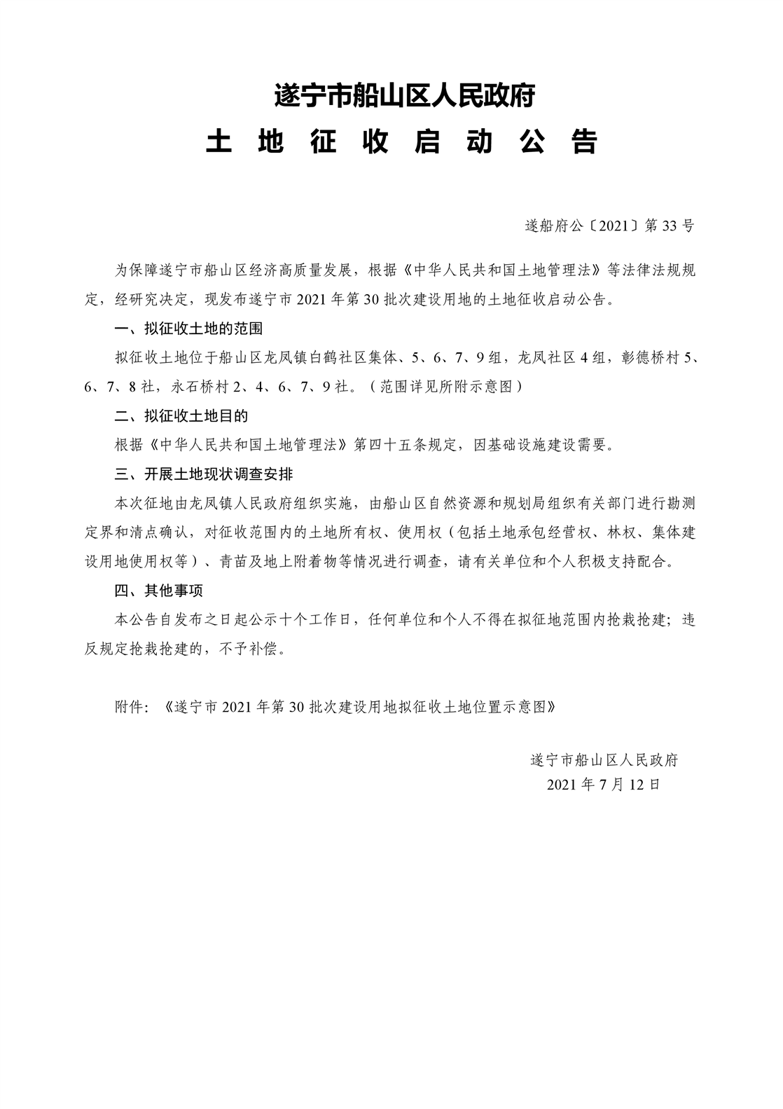 遂宁市船山区人民政府土地征收启动公告(2021年第30批次)