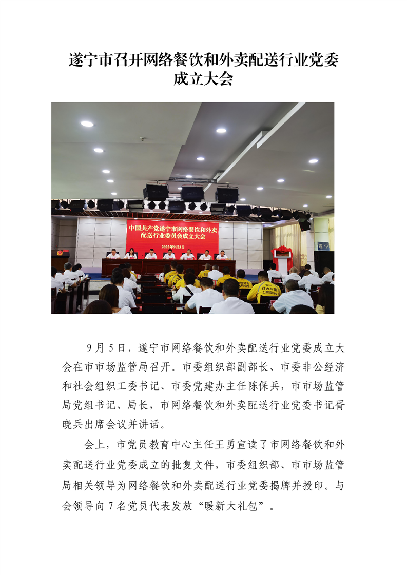 遂宁市召开网络餐饮和外卖配送行业党委成立大会