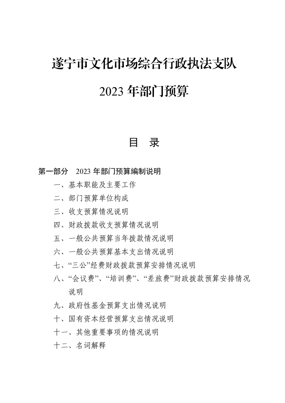 遂宁市文化市场综合行政执法支队2023年部门预算