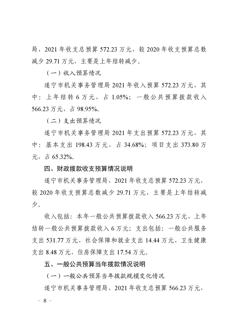 遂宁市机关事务管理局2021年部门预算(预算单位)