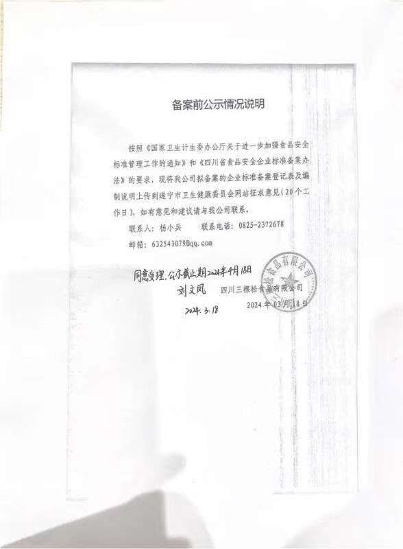 四川三棵松食品有限公司——红糖浆(公示截止期2024年4月18日)
