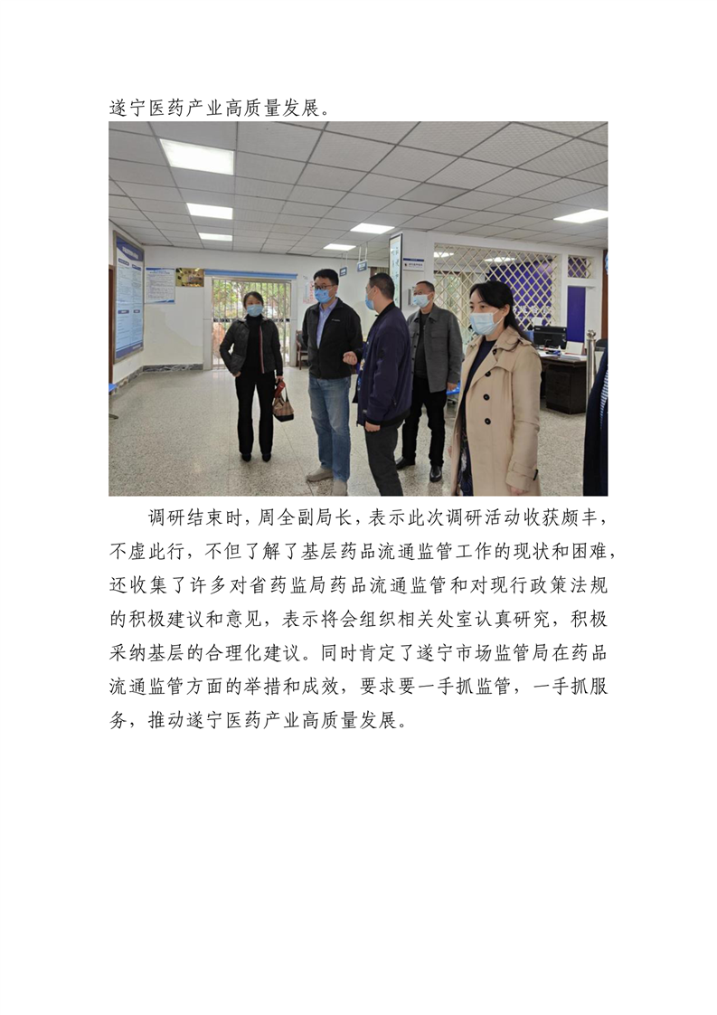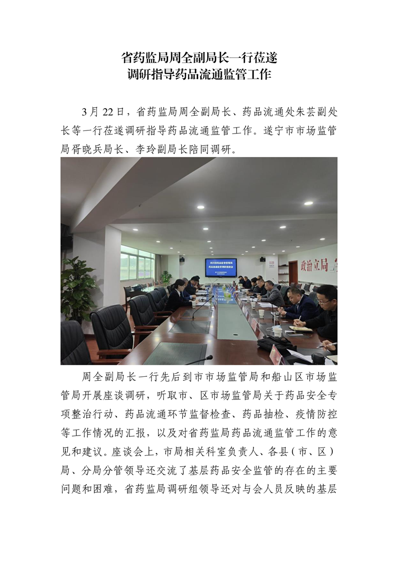 省药监局周全副局长一行莅遂调研指导药品流通监管工作