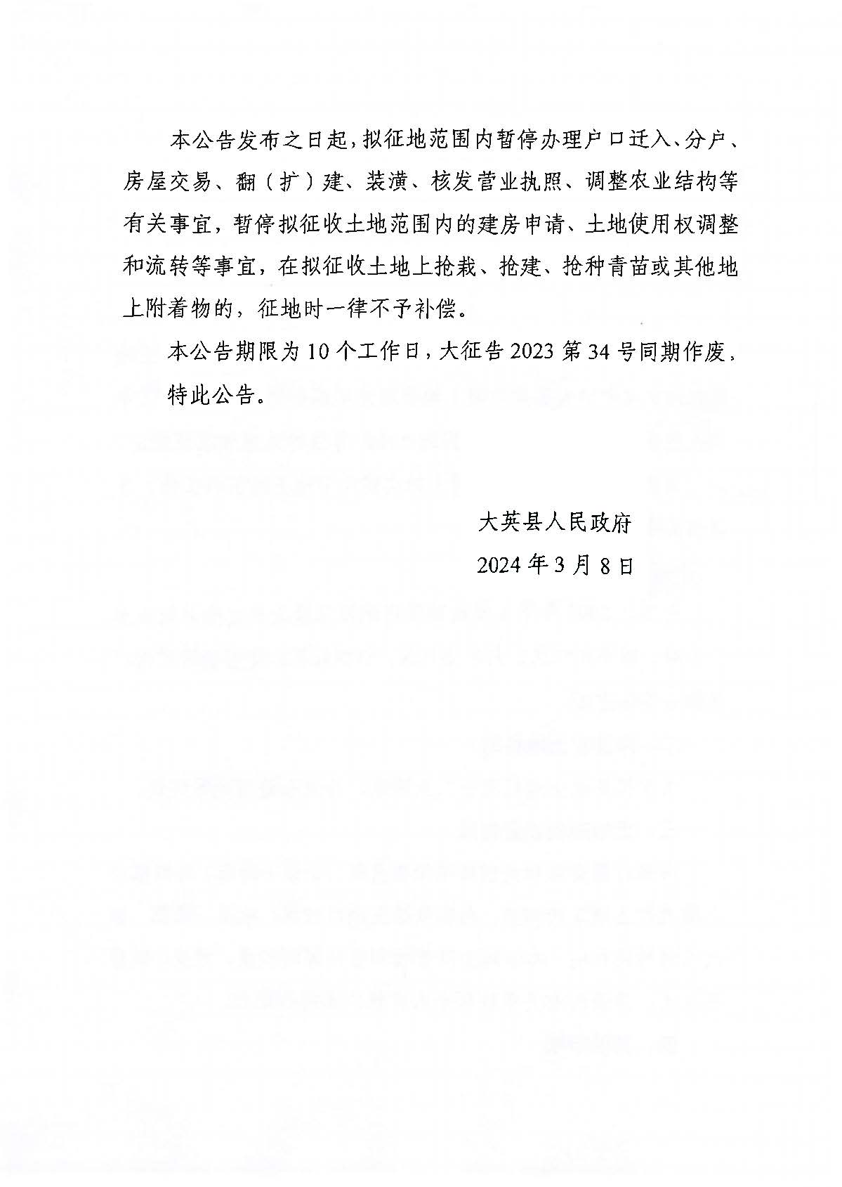 大英县人民政府征收土地预公告(大征告2024第6号)