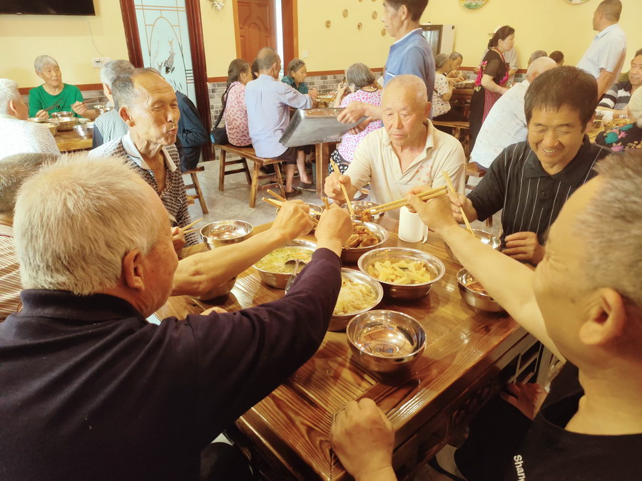 大英县象山镇凤阳村长寿食堂,每逢中午就很热闹,不少村民会提前过来等待食堂开饭。