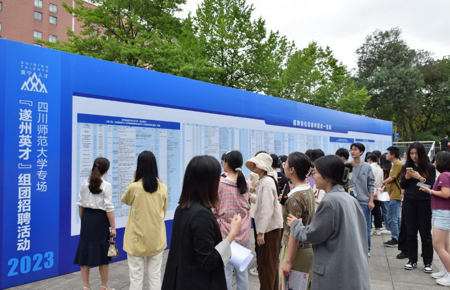 4个多月后,2023年“遂州英才”组团招聘全国行活动(西南石油大学专场)暨涪郪流域“两江四地”人才协同发展联合就业招聘活动在西南石油大学拉开帷幕。活动吸引了800余名在校大学生参与,现场咨询近700人次,收到简历560份,意向签约97人。
