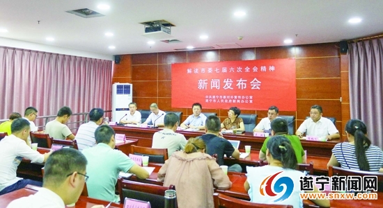 首场发布会上,市委副秘书长、市委办公室主任吴军介绍了市委七届六次全会有关情况,并与市委政研室副主任文志芬、市委办综合室主任杨雷、市发改委副主任袁敏、市商务局副局长肖鹏飞一起,就媒体关心的问题进行了详实解读。