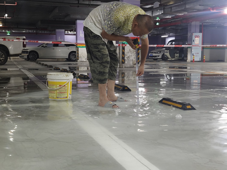 9月3日上午,记者来到遂宁经开区金科集美天宸小区。一走进小区的地下车库,记者便发现多处车位存在积水痕迹。在该小区6号单元楼下的车库区域,积水问题严重,现场有居民拿出卷尺测量,发现积水最深处已超过4厘米。