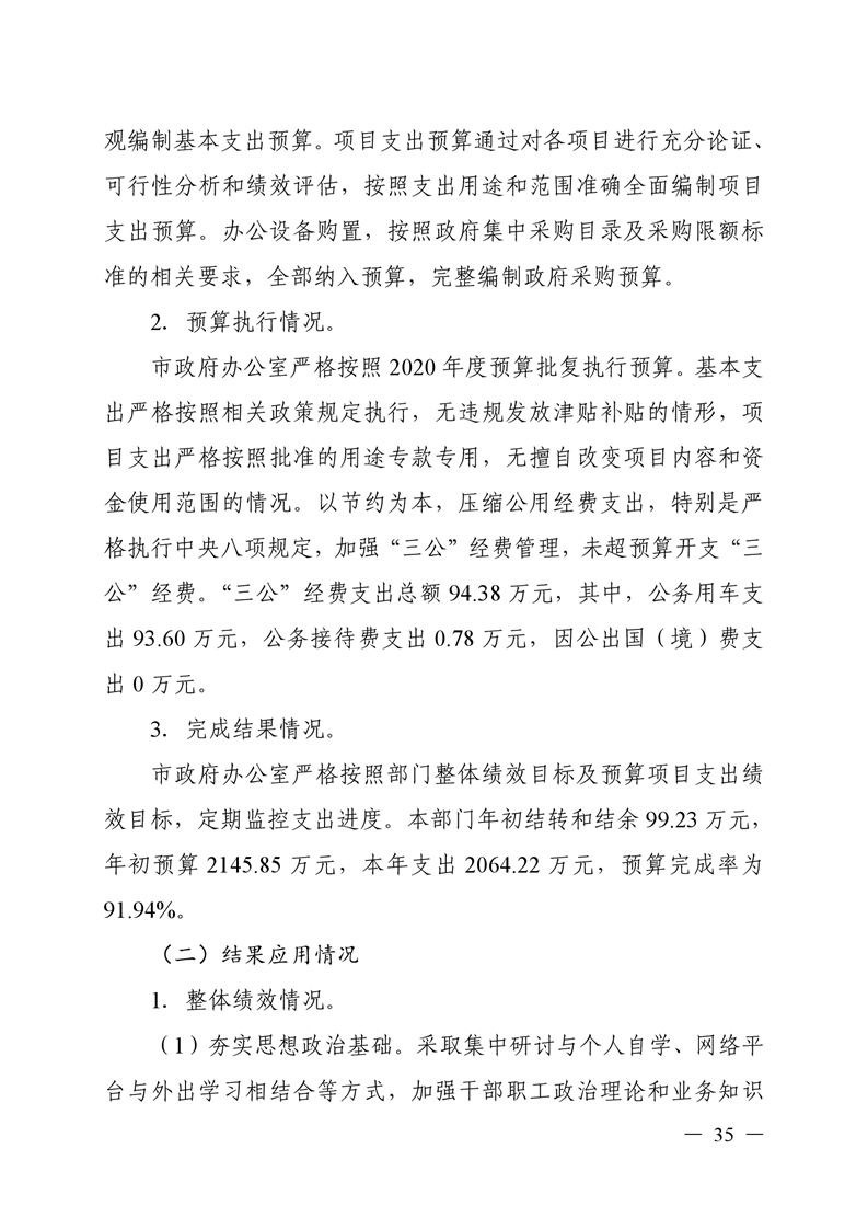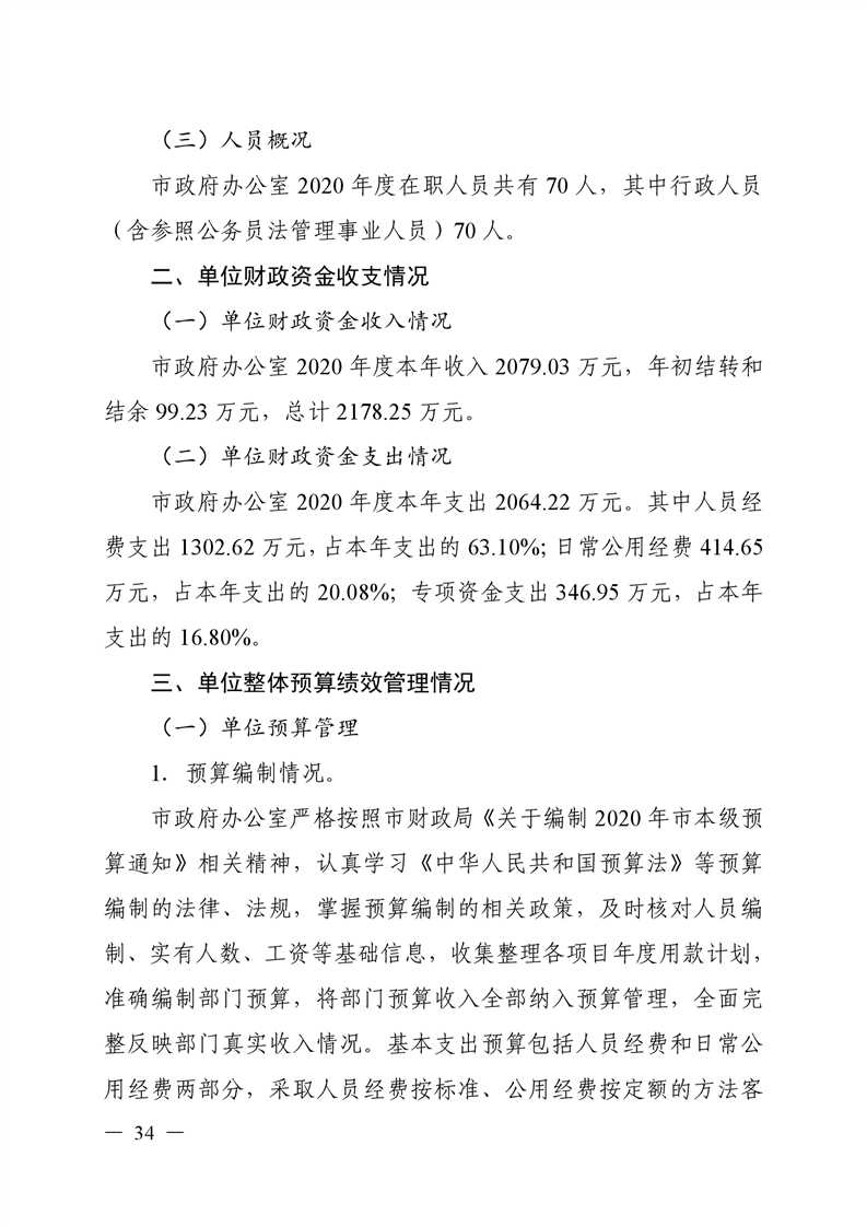 2020年度四川省遂宁市人民政府办公室部门决算(本级)