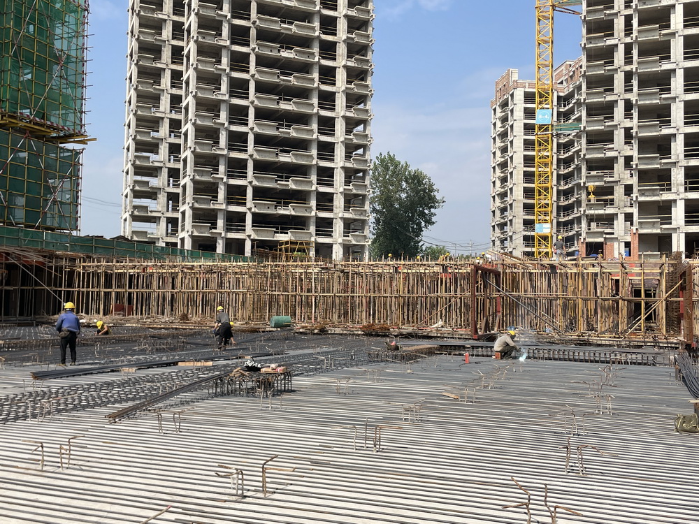 绑扎钢筋、切割木板、测量水平……项目现场记者看到,数名施工人员分工协作、紧密配合,两座塔吊正在进行钢筋的运输,焊接声、切割声与机器的轰鸣声交织在一起,奏响了一首激昂的项目建设“进行曲”。