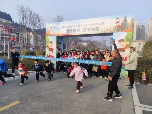 1月1日,遂宁高新区首届桃花山亲子趣味登山赛在桃花山公园举行,吸引了30多个家庭100余名运动爱好者参与,以登山迎新的方式,开启健康活力新一年。