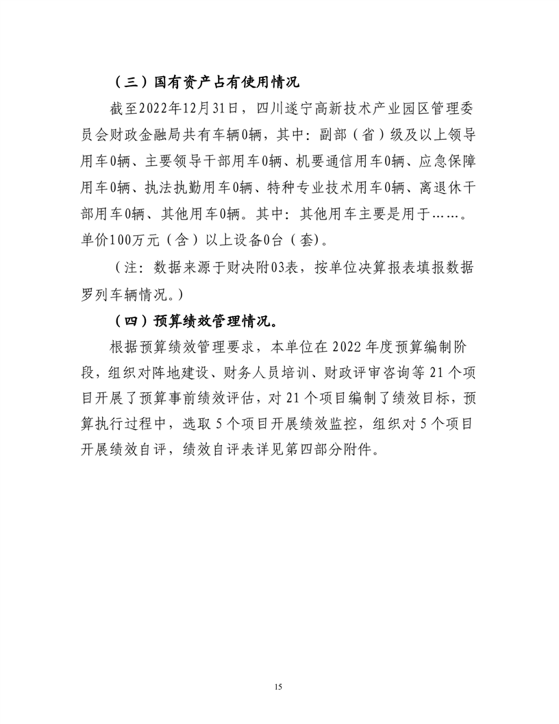 2022年度遂宁高新区财政金融局决算