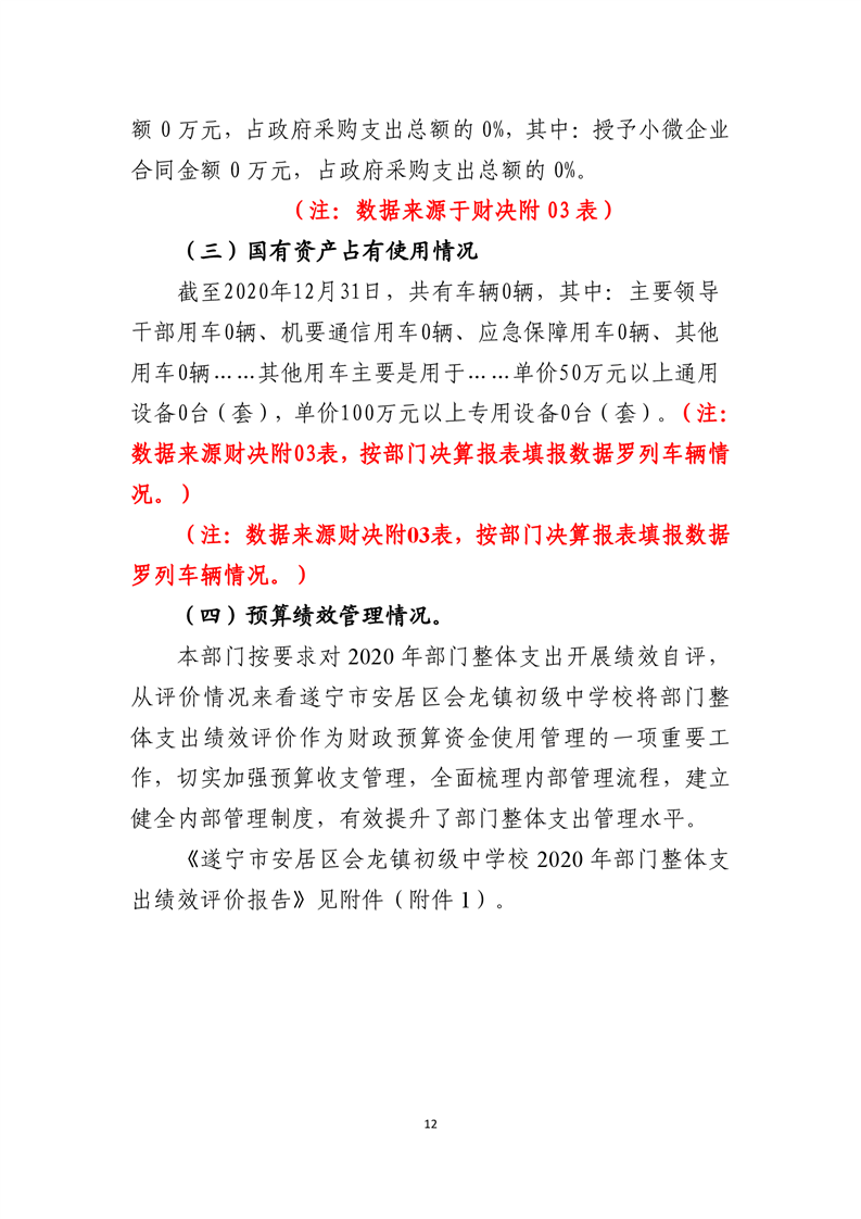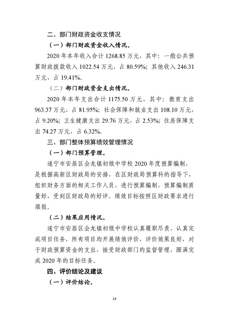 2020年度四川省遂宁市安居区会龙镇初级中学校决算