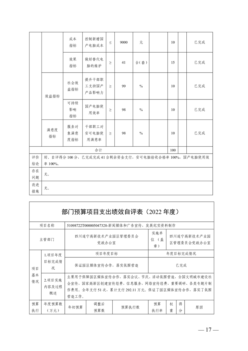 遂宁高新技术产业园区管理委员会党政办公室2022年度决算公开表.XLS