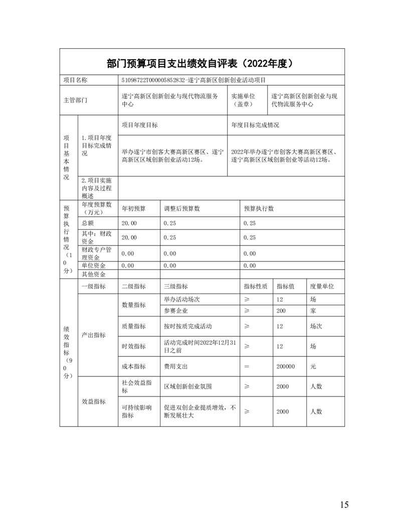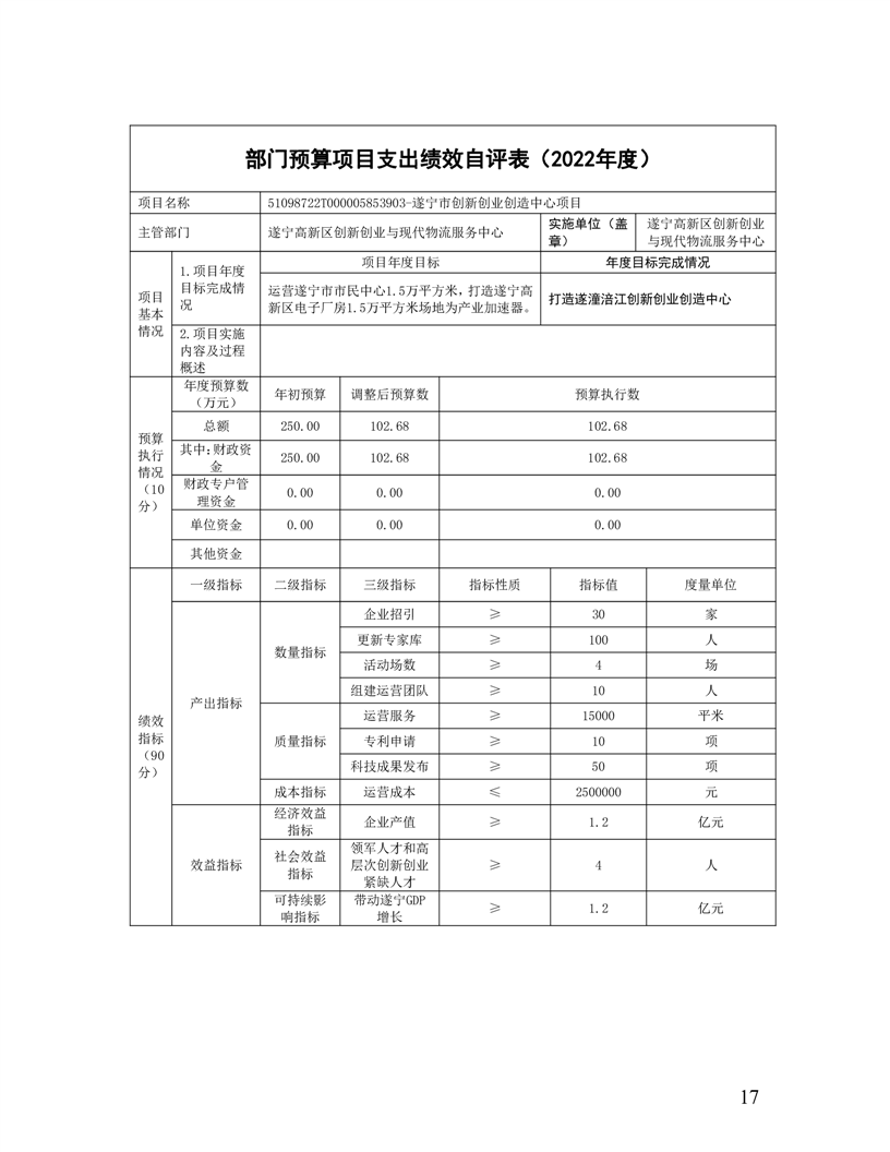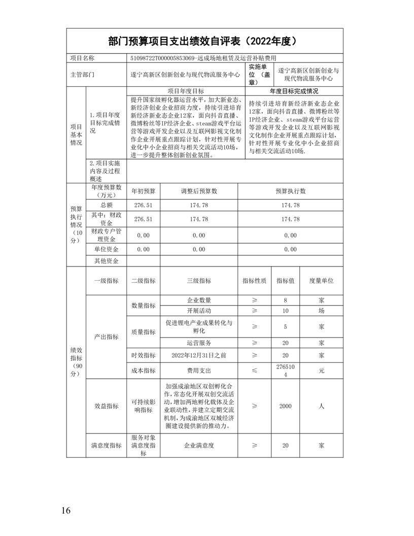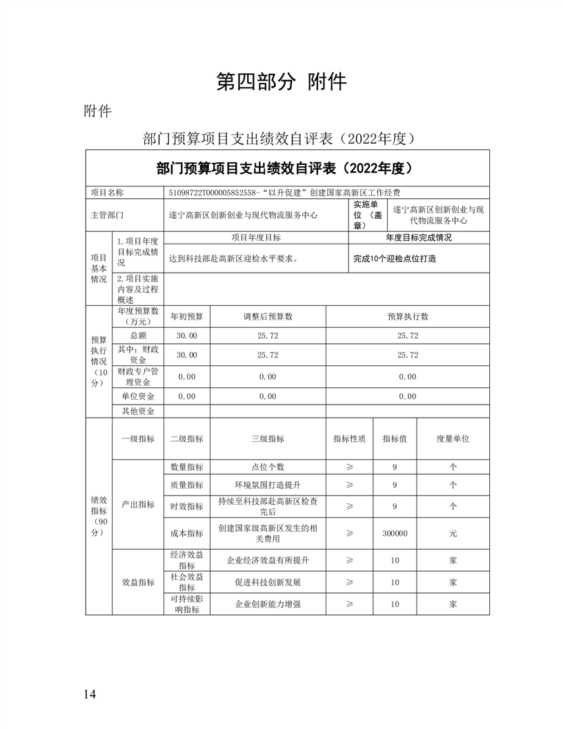 2022年度遂宁高新区创新创业与现代物流服务中心决算